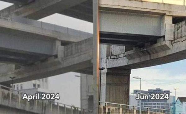 Semalam, seorang pemilik akaun X menyuarakan kebimbangan kemungkinan terdapat keretakan di jejambat tersebut berdasarkan dua keping gambar yang didakwa dirakamkan pada April lepas dan bulan ini.