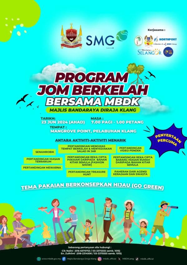 SHAH ALAM, 12 JUN : Orang ramai dipelawa menyertai program Jom Berkelah Bersama Majlis Bandaraya Diraja Klang (MBDK) pada 23 Jun ini.