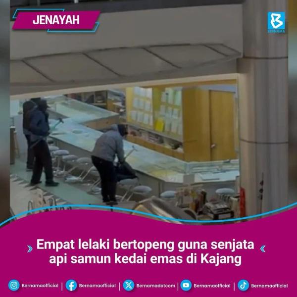KUALA LUMPUR, 18 JUN: Empat lelaki diburu polis selepas terlibat dalam kejadian samun menggunakan senjata api membabitkan sebuah kedai emas di pusat beli-belah di Kajang semalam.