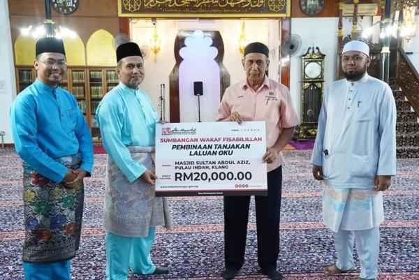 SHAH ALAM, 19 JUN: Perbadanan Wakaf Selangor (PWS) menyerahkan sumbangan wakaf fisabilillah berjumlah RM20,000 kepada Masjid Sultan Abdul Aziz, Pulau Indah, baru-baru ini.