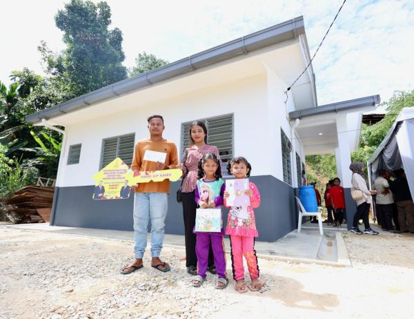 Terdahulu, Senah dan suaminya Amran Ta, 50, menerima bantuan rumah baharu bernilai RM85,000 dengan keluasan 700 kaki persegi manakala Hanis dan suami Haris Othman menerima kediaman bernilai RM55,000 (400 kaki persegi).