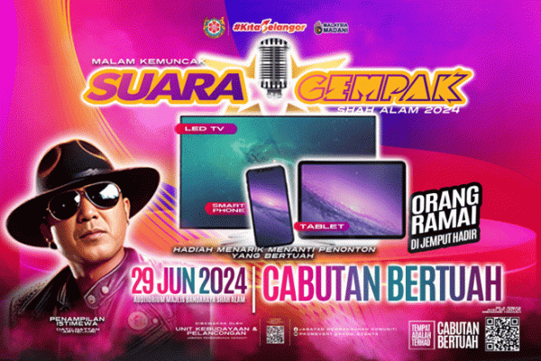 SHAH ALAM, 28 JUN: Orang ramai dipelawa memeriahkan Kemuncak Suara Gempak Shah Alam 2024 jam 8 malam esok.