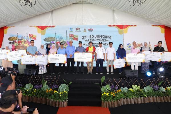 Menteri Pertanian dan Keterjaminan Makanan Datuk Seri Mohamad Sabu bersama penerima insentif geran sempena majlis perasmian Lembaga Pemasaran Pertanian Persekutuan (FAMA) Fest di Pasaraya Besar AEON Mall, Bukit Tinggi, Klang pada 29 Jun 2024. Foto REMY ARIFIN/SELANGORKINI