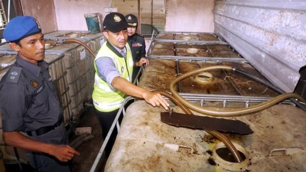 “Semasa serbuan, seorang pekerja premis warga tempatan berusia 37 tahun sedang mengisi minyak diesel dan petrol ke dalam tangki dua treler dengan nombor pendaftaran asing. Kita dapati kedua-dua treler itu telah diubah suai dan dipasang tangki tambahan.