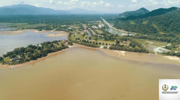 Situasi semasa paras air Kolam Bukit Merah pada 2 Julai 2024 di beberapa kawasan sekitar di Kampung Selamat, Bukit Merah Laketown, struktur empangan dan di Kuala Sungai Kurau. Foto Facebook JPS Daerah Kerian[/caption]