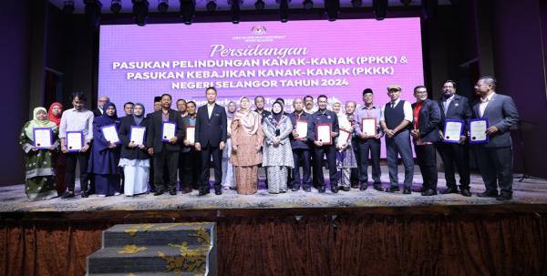 EXCO Pembangunan Wanita dan Keluarga Anfaal Saari dan Pengarah Kebajikan Masyarakat Selangor, Azmir Kassim bersama peserta Persidangan Pasukan Perlindungan Kanak-Kanak (PPKK) dan Pasukan Kebajikan Kanak-Kanak (PKKK) Selangor 2024 di Geno Hotel, Subang Jaya pada 17 Julai 2024. Foto NUR ADIBAH AHMAD IZAM/MEDIASELANGOR[/caption]