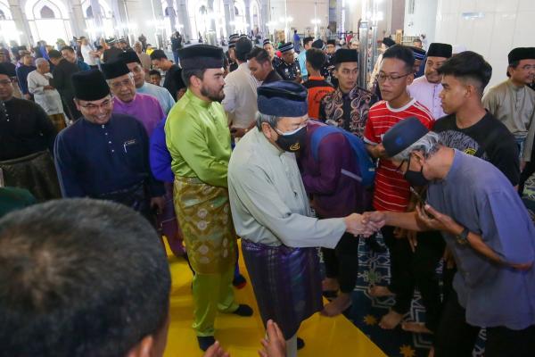 Sultan Selangor Sultan Sharafuddin Idris Shah Alhaj selaku Kepten Yang Dipertua Tentera Laut Diraja Malaysia (TLDM) berkenan berangkat pada Majlis Bacaan Yasin, Tahlil dan Doa Selamat sempena Hari TLDM Ke-90 sebelum menunaikan solat Jumaat di Masjid An-Nur, Pangkalan TLDM Lumut pada 26 April 2024. Foto BERNAMA[/caption]