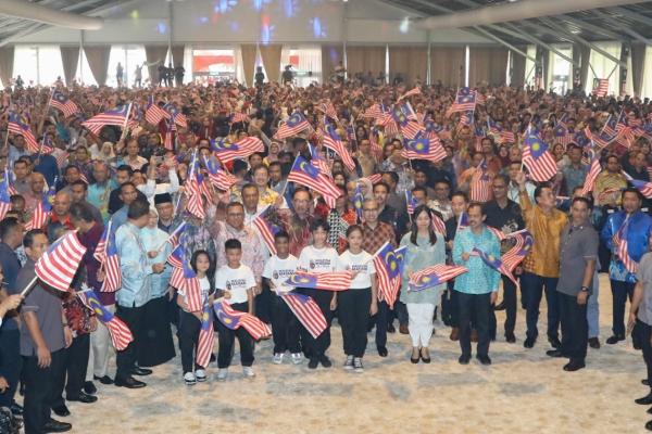 Perdana Menteri Dato’ Seri Anwar Ibrahim bersama Dato’ Menteri Besar Dato’ Seri Amirudin Shari mengibarkan bendera bersama hadirin sempena majlis Pelancaran Bulan Kebangsaan dan Kibar Jalur Gemilang 2024 di Dewan Acara Cyber Cyberjaya, Sepang pada 21 Julai 2024. Foto REMY ARIFIN/MEDIA SELANGOR