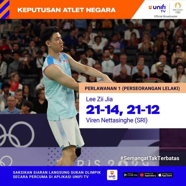 PARIS, 28 JULAI: Pemain perseorangan lelaki utama negara Lee Zii Jia memulakan pencarian pingat emas Sukan Olimpik Paris 2024 dengan kemenangan mudah di hadapan sorakan kira-kira 8,000 penonton di Porte de La Chapelle Arena di sini hari ini.