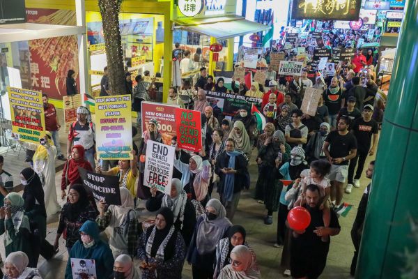 Himpunan anjuran Sekretariat Solidariti Palestin dan Gerakan Boycott, Divestment, Sanctions Malaysia (BDS Malaysia) itu dimulakan dengan perarakan di pusat membeli-belah Starhill ke Lot 10 melalui Fahrenheit88 di sini.