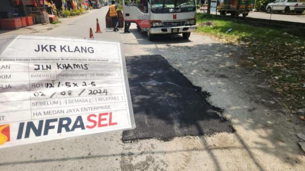Infrasel memaklumkan, pihaknya siap menurap jalan rosak di Jalan Khamis dan Jalan Belimbing, Meru, Klang masing-masing pada Isnin dan 2 Ogos lalu.