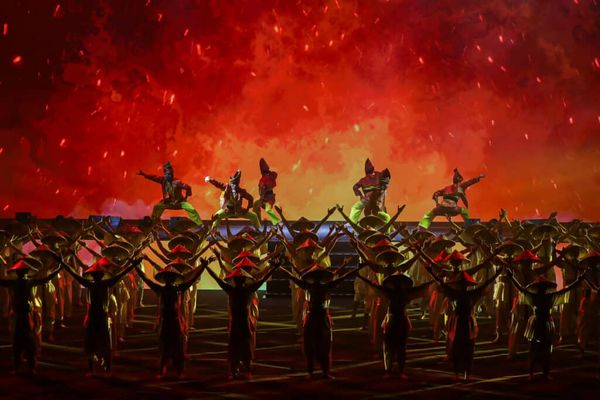 Persembahan pembukaan ketika Majlis Penutupan Sukan Malaysia (SUKMA) Sarawak 2024 di Stadium Perpaduan, Petra Jaya pada 24 Ogos 2024. Foto HAFIZ OTHMAN/MEDIA SELANGOR