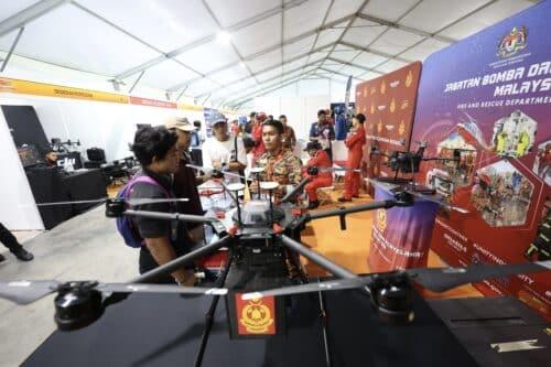 Pegawai Bomba Ahmad Zaidi Abdul halim memberi penerangan mengenai drone PGI Matrice 600 Pro yang digunakan untuk pemantauan udara mencari dan menyelamat di reruai jabatan Bomba dan Penyelamat ketika Pameran Udara Selangor (SAS) 2024 di Pusat Penerbangan Serantau (RAC) Skypark, Shah Alam pada 13 Septembar 2024. Foto NUR ADIBAH AHMAD IZAM/MEDIA SELANGOR