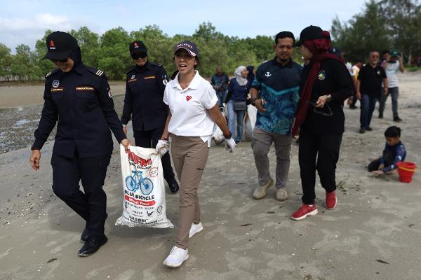 Tengku Zatashah turut berkenan merasmikan Kempen #Bebasplastik Negeri Selangor dan berswafoto dengan pengunjung Pantai Morib.