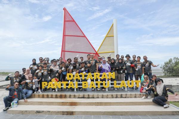 Sukarelawan mengutip sampah ketika aktiviti pembersihan pantai sempena program konvoi motosikal Hari Malaysia Team Selangor di Dataran Pantai Batu Laut, Kuala Langat pada 15 September 2024. Foto FIKRI YUSOF/MEDIA SELANGOR[/caption]