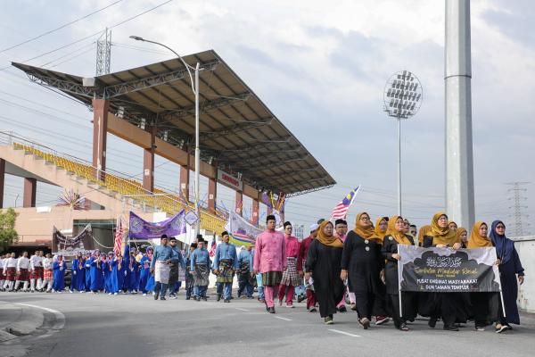 EXCO Pembangunan Wanita dan Kebajikan Masyarakat Anfaal Saari (tengah, hadapan) turut serta dalam perarakan ketika program Sambutan Maulidur Rasul dan Hari Malaysia peringkat Parlimen Selayang di sekitar berdekatan Stadium MPS, Gombak pada 16 September 2024. Foto FIKRI YUSOF/MEDIA SELANGOR