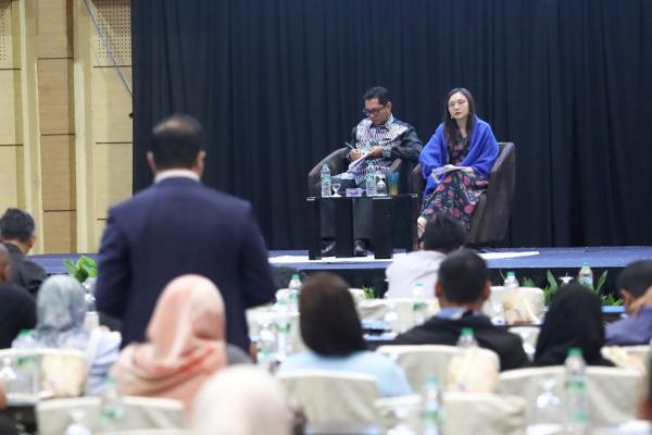 EXCO Kesihatan Awam & Alam Sekitar Jamaliah Jamaluddin dan Pengarah Lembaga Urus Air Selangor (LUAS) Ts Hasrolnizam Shaari mendengar soalan peserta ketika sesi libat urus bersama pihak berkepentingan bagi pelaksanaan Dasar Pelepasan Sifar (ZDP) negeri Selangor di Pusat Konvensyen Shah Alam (SACC), Shah Alam pada 19 September 2024. Foto REMY ARIFIN/MEDIA SELANGOR