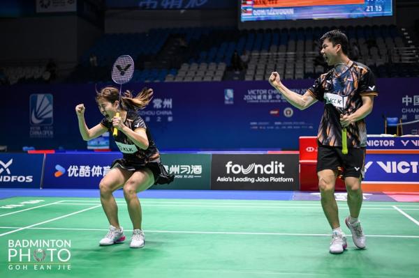 Pada aksi separuh akhir berlangsung di Pusat Sukan Olimpik Changzhou, pasangan suami isteri yang berada di ranking ke-12 dunia itu tampil dengan aksi positif bagi menumbangkan lawannya 21-18 dan 21-18, dalam tempoh 51 minit.