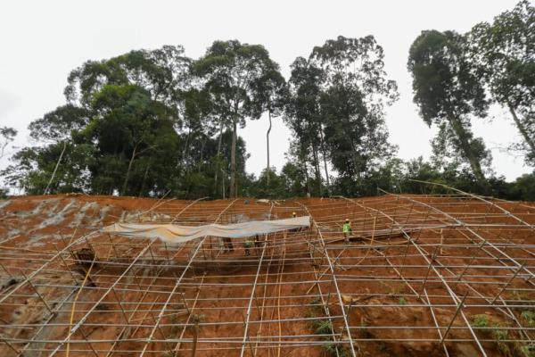 Pekerja kontraktor sedang melakukan kerja - kerja baik pulih cerun di Jalan Genting Peras, Hulu Langat pada 3 Oktober 2024. Foto HAFIZ OTHMAN/MEDIA SELANGOR