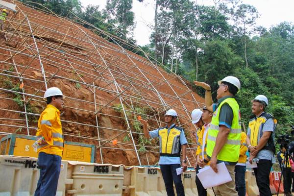 EXCO Infrastruktur Izham Hashim meninjau kerja-kerja baik pulih cerun ketika lawatan kerja di Jalan Genting Peras, Hulu Langat pada 3 Oktober 2024. Foto ELYANA NATASHA MOHD ZAIDI/MEDIA SELANGOR