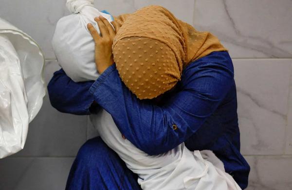 Foto Mohammed Salem yang muncul juara pertandingan kewartawanan foto paling berprestij itu menunjukkan seorang wanita memeluk satu jenazah kecil.
