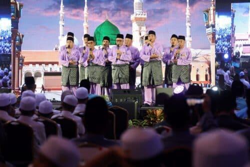 Persembahan dari kumpulan Shoutul Makmuriah dari Sungai Besar yang menjadi johan Festival Al-Barzanji dan Marhaban sempena Sambutan Maulidur Rasul peringkat Selangor di Dewan Orkid Masjid Sultan Salahuddin Abdul Aziz Shah, Shah Alam pada 5 Oktober 2024. Foto AHMAD ZAKKI JILAN/MEDIA SELANGOR