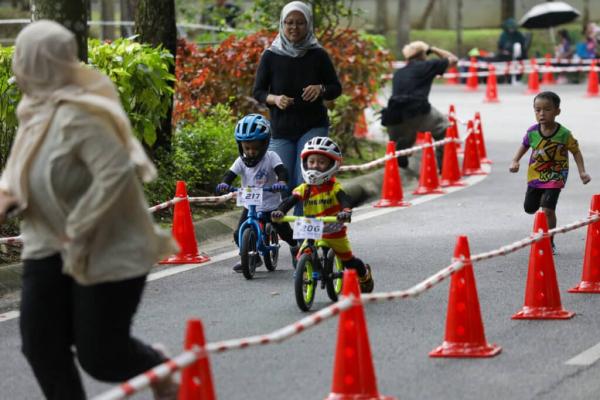 Aksi peserta cilik basikal tolak bersama ibu bapa ketika Majlis Sambutan Hari Sukan Negara (HSN2024) Peringkat Selangor di Dataran Kemerdekaan, Shah Alam pada 12 oktober 2024. Foto HAFIZ OTHMAN/MEDIA SELANGOR