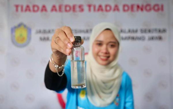 Pembantu Kesihatan Awam Jabatan Kesihatan dan Alam Sekitar MPAJ, Nor Ain Binti Mohd Yusof menunjukkan jentik-jentik yang dipamerkan pada Majlis Perasmian Mini Karnival Bersih, Indah Dan Sihat MPAJ Sempena Hari Sungai Sedunia 2024 di Laman Niaga, Ampang Waterfront, Ampang pada 13 Oktober 2024. Foto MOHD KHAIRUL HELMY MOHD DIN/MEDIASELANGOR