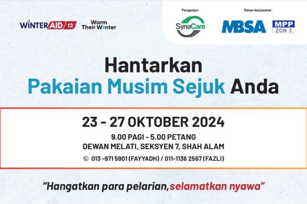 Orang ramai juga dialu-alukan untuk menderma menerusi Tabung ‘Warm Their Winter’ di akaun Maybank 550514240333.