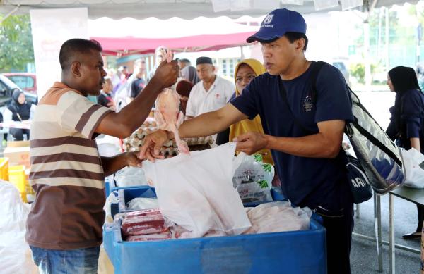 Jualan Ehsan Rahmah (JER) menawarkan ayam RM10 seekor, daging pejal (RM10/pek) telur gred B (RM10 sepapan), ikan kembung (RM6/pek), minyak masak lima kg (RM25) dan beras lima kg (RM13).