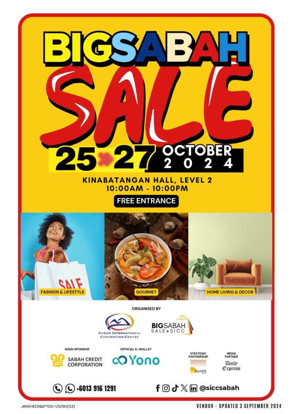 KLANG, 22 OKT: Popular sebagai destinasi borong terbesar di Malaysia, Pusat Borong GM Klang memperkukuh kehadirannya di Sabah melalui penyertaan yang signifikan dalam Big Sabah Sale 2024 edisi kedua yang akan berlangsung bermula 25 hingga 27 Oktober 2024 di Pusat Konvensyen Antarabangsa Sabah (SICC) pada jam 10 pagi sehingga 10 malam. Dalam usaha meneroka pasaran Sabah, lapan pemborong GM Klang telah terpilih untuk mempromosikan produk-produk mereka di bawah pavilion GM Klang.