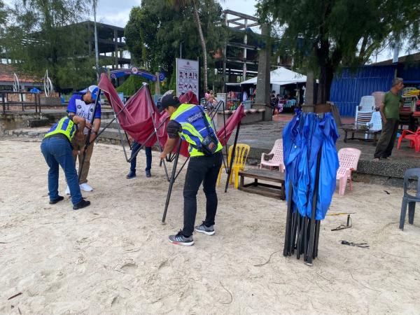"Pengusaha khemah juga dikehendaki melakukan pembersihan termasuk mengalihkan semua peralatan seperti khemah, meja, kerusi, payung, struktur atau binaan tempat simpanan dan sebagainya," katanya kepada pemberita di sini hari ini.
