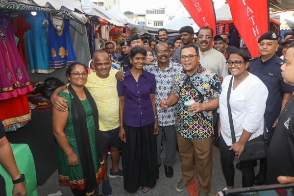 Dato' Menteri Besar Dato' Seri Amirudin Shari menyerahkan sumbangan Deepavali kepada pengunjung ketika lawatan ke bazar Deepavali di Jalan Tengku Kelana, Klang pada 27 Oktober 2024. Foto REMY ARIFIN/MEDIA SELANGOR[/caption]