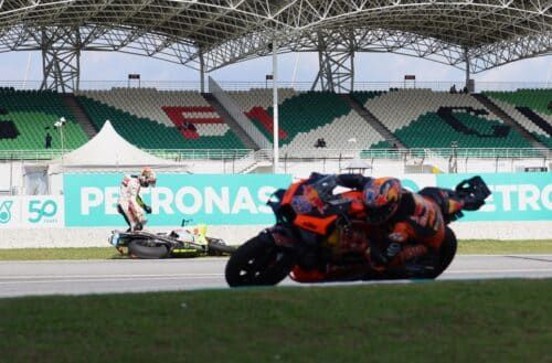 pelumba Pertamina Enduro VR46 Racing Team, M. Bezzecchi terbabas ketika sesi latihan MotoGP menerusi saingan Grand Prix Malaysia 2024 di Litar Antrabangsa Sepangpada 1 November 2024. Foto NUR ADIBAH AHMAD IZAM /MEDIA SELANGOR