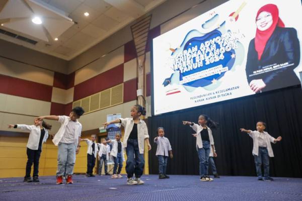 Kanak-kanak taska membuat persembahan tarian ketika Majlis Penutup Program Advokasi Perkhidmatan Taska Peringkat Selangor 2024 di Pusat Konvensyen Shah Alam pada 7 November 2024. Foto HAFIZ OTHMAN/MEDIA SELANGOR