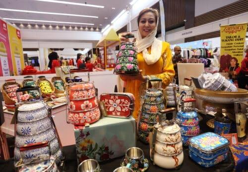 Pengasas Tiffin Jeiwa, Ina Fadilah Nizar menunjukkan produk lukisan tangannya dalam Karnival Usahawan Wanita Malaysia di Pusat Konvensyen IOI City Mall, Putrajaya pada 8 November 2024. Foto AHMAD ZAKKI JILAN/MEDIA SELANGOR