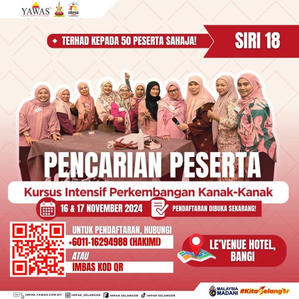 "Anda pengasuh di rumah yang mengasuh, mengundi, dan menetap di Selangor? Belum pernah menghadiri mana-mana kursus pengasuhan? Inilah peluang anda!