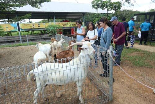 Peserta Regatta Antarabangsa Raja Muda Selangor memberi kambing makan ketika menyertai suai kenal (FAM Trip) mempromosikan produk agro pelancongan Selangor di Farm Fresh Serdang, Subang Jaya pada 14 November 2024. Foto AHMAD ZAKKI JILAN/MEDIA SELANGOR