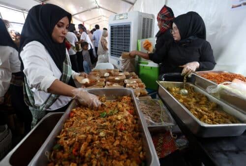 Petugas menyiapkan nasi ambeng di reruai Majlis Bandaraya Shah Alam (MBSA) sempena Festival Makanan Selangor di Pantai Bagan Lalang, Sepang pada 17 November 2024. Foto AHMAD ZAKKI JILAN/MEDIA SELANGOR