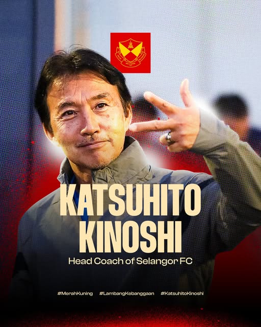 KUALA LUMPUR, 24 NOV: Jurulatih Jepun, Katsuhito Kinoshi, dilantik sebagai Ketua Jurulatih Selangor FC yang baharu bagi mengisi kekosongan ditinggalkan Nidzam Jamil, yang meletak jawatan secara mengejut bulan lepas.