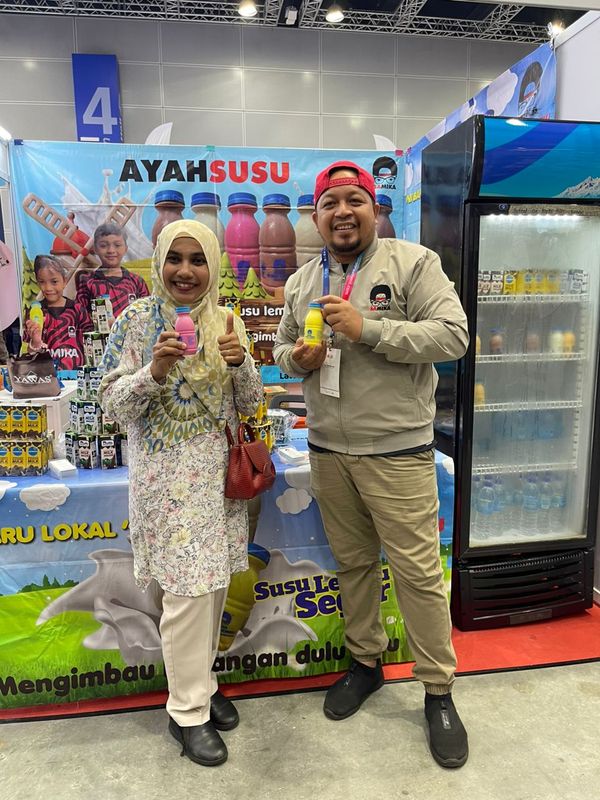 Usahawan susu Samika, Mohd Noor Hapizin, 38, menunjukkan produk keluarannya kepada orang ramai. Foto Mohd Noor Hapizin[/caption]