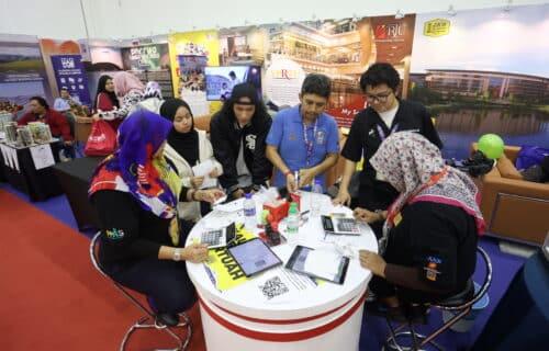 Petugas Perbadanan Perpustakaan Awam Selangor (PPAS) membantu pengunjung mendaftar untuk cabutan bertuah sempena hari terakhir Pesta Buku Antarabangsa Selangor (SIBF) 2024 di Pusat Konvensyen Setia City, Shah Alam pada 3 Disember 2024. Foto AHMAD ZAKKI JILAN/MEDIA SELANGOR