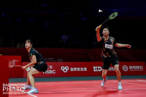 Aksi beregu campuran negara Chen Tang Jie-Toh Ee Wei dan Goh Soon Huat-Shevon Lai dalam perlawanan peringkat kumpulan A Jelajah Dunia Akhir Persekutuan Badminton Dunia (BWF) 2024 di Hangzhou China pada 13 Disember 2024. Foto Badminton Association of Malaysia - BAM[/caption]