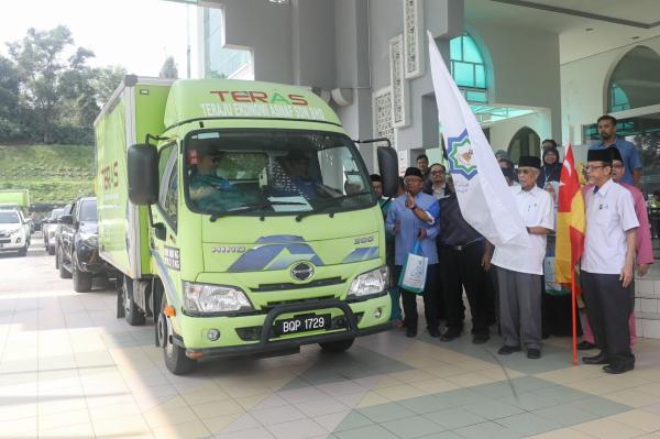 Pengerusi Majlis Agama Islam Selangor (Mais) Tan Sri Abdul Aziz Mohd Yusof bercakap kepada media selepas melepaskan konvoi Misi Prihatin Mangsa Banjir ke Kelantan, Terengganu dan Kedah di Bangunan Sultan Idris Shah, Shah Alam pada 13 Disember 2024. Foto REMY ARIFIN/MEDIA SELANGOR[/caption]