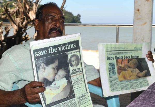 "Saya dan isteri panik serta menangis apabila dapati Thulaashi hilang, kemudian kami diberitahu kami bayi kami berada di tengah laut manakala Kanchana selamat dengan berpaut pada pokok pisang yang terletak kira-kira 10 meter dari kafe kami.