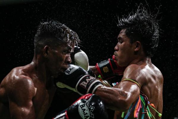Aksi petarung bagi kategori profesional 58kg, Fuad Izuan (Malaysia) (kiri) menentang Pong Buncheng (Kemboja) ketika Kejohanan Muay Thai Rentap Pandan Madani di Kompleks Muhibah Taman Nirwana, Ampang Jaya pada 29 Disember 2024. Foto FIKRI YUSOF/MEDIA SELANGOR