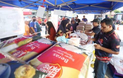 Orang ramai membeli barangan keperluan asas dalam program Jualan Ehsan Rahmah (JER) sempena majlis perasmian Pasaraya Kedua Ehsan Mart DUN Pandan Indah di Pandan Utama, Ampang Jaya pada 2 Januari 2025. Foto AHMAD ZAKKI JILAN/MEDIA SELANGOR