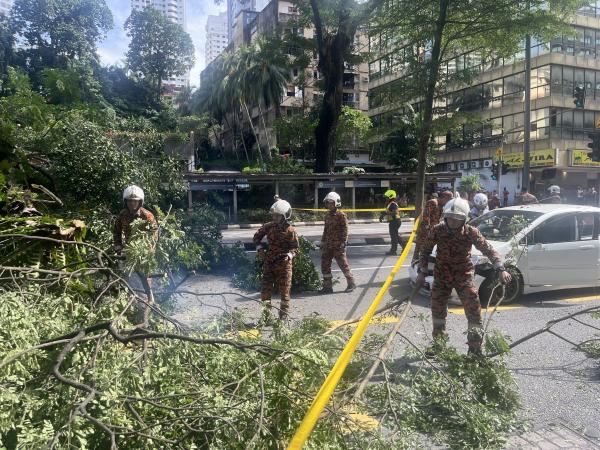 Md Izzat berkata pasukan bomba, dengan bantuan Dewan Bandaraya Kuala Lumpur (DBKL), menjalankan kerja pembersihan dan memotong pokok yang menghalang laluan.