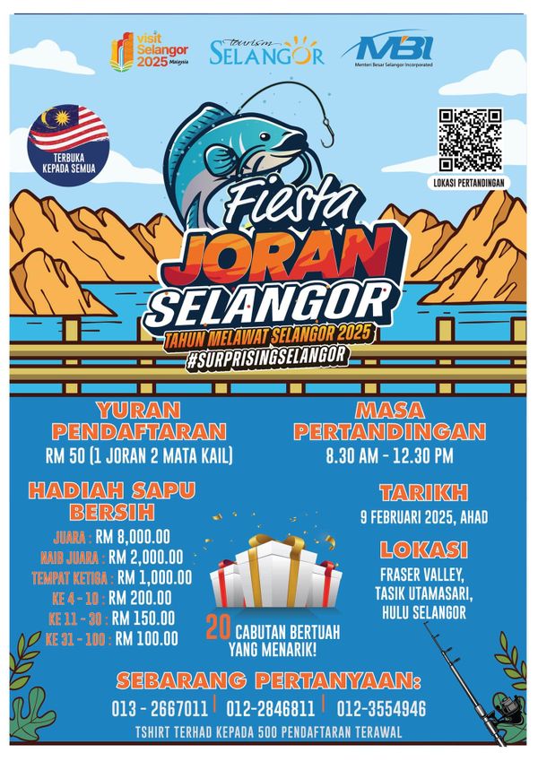 SHAH ALAM, 17 JAN: Hadiah wang tunai keseluruhan berjumlah RM22,400 menanti peserta Fiesta Joran Selangor 2025 yang bakal berlangsung pada 9 Februari depan.