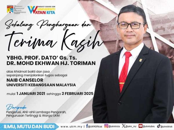 Terdahulu media melaporkan Mohd Ekhwan mengumumkan meletakkan jawatan sebagai Naib Canselor UKM berkuat kuasa Ahad.